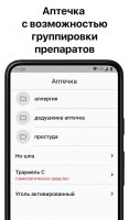 Имеется способность составить свою личную аптечку с видами нужных препаратов. Инструкции ко всем лекарствами можно оставлять на внутреннем накопителе телефона. Это даёт возможность посмотреть их без доступа к интернету.