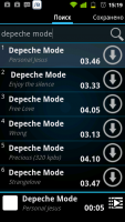 Загрузка осуществляется после нажатия по нужной клавише - выбранный трек загружается в память телефона. Папка с наименованием Загрузки создаёт плейлист программы, который находится в отдельном меню. Присутствует загрузка трека во время его прослушивания. Более того, имеется скачивание нескольких композиций в одно время. Уже загруженные композиции помечаются галкой - это даёт возможность исключить повторного скачивания.