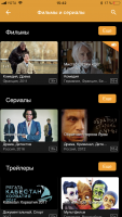 После старта работы программы в основном меню откроется перечень известных фильмов. Ещё имеется способность отыскать желаемый контента по виду. Все ролики распределены на некоторые группы:- Кино;