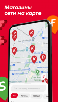 Также в утилите имеется и встроенная карта. Не ней пользователь может изучить местоположение всех супермаркетов, относящихся к сети korzinka uz. Встроенный навигатор поможет проложить наиболее короткий маршрут до одного из дискаунтеров.Также имеется встроенный поиск. В нем можно найти ближайший магазин в нужном вам городе.