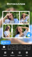 Добавив несколько фотографий, вы сможете создать уникальный памятный коллаж. Для этого следует зайти в отдельную категорию. Для коллажа возможно добавить одновременно не более пятнадцати изображений. Доступны такие манипуляции как изменение размера фото и их места в коллаже. После завершения процесса создания можно сохранить готовую работу в память устройства.Особенности