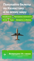 За каждую покупку пользователи получают бонусные баллы, равные одному проценту от стоимости авиабилетов. Эти баллы могут быть использованы для оплаты будущих заказов. Также приложение предоставляет возможность получать SMS-уведомления об отмене или переносе рейсов, а также ознакомиться с акциями, скидками и специальными предложениями от авиакомпаний.Особенности