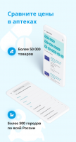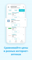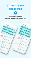 Программа даёт возможность находить лекарства по наименованию или действующему веществ. Имеется поиск при помощи голоса. Более того, программа предлагает похожие медикаменты и анализирует стоимость в разных аптеках. Имеется способность распределения итога поиска по цене.После вписания наименования в окно поиска, клиент видит список лекарств из самых близких к нему аптек. Их местоположение можно увидеть на карте. Программа функционирует с таким сетями аптек: