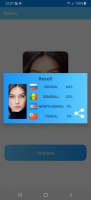 После этого нужно кликнуть на клавишу Analyze. В течение нескольких секунд встроенный сервис сделает анализ фото и выявит национальность человека на фото. При этом клиент может увидеть соотношение национальностей в процентах. Нужно сказать, что для применения программы не нужно соединение с интернетом.