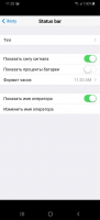 После загрузки программы клиенту нужно откорректировать настройки панели оповещений. Программа даёт возможность показать в верхней части дисплея данные об остатке заряда батареи, имя поставщика сотовой связи и мощность сигнала. Имеется способность отобрать формат часов.Имеется опция смены окраса фона. Можно отобрать любой цвет из имеющейся палитры. Ещё программа даёт возможность запустить центр оповещений, в котором имеются последние уведомления и перечень будущих событий.