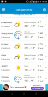 Прогноз указывает температуру, влажность воздуха, быстрота и сторону ветра, а ещё атмосферное давление и шанс выпадения осадков, аналогично программе Гисметео. Смах вверх запускает долгий прогноз на семь дней, а клавиша Подробно даёт возможность смотреть метеоданные на текущий день на каждый час. Она показывает графики изменения температуры, давления влажности, смены направленности и быстрота ветра. Данные можно крутить при помощи смаха.