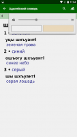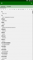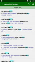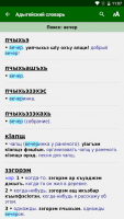 Имеется другой вид словаря. Имеется способность смотреть перечень русских слов и фраз и искать их объяснение на адыгейском. Список слов листается при помощи смахов.