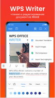 WPS Office - известная Андроид программа, которая сделана для функционирования с разными текстовыми файлами. Имеется пятьдесят один язык и все популярные виды офисных данных. Более того, программа полностью совмещается с Ворд, ПоверПоинт, Ексель, Адобе ПДФ и Гугл Док.