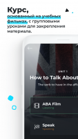 У Android утилиты ABA English есть одна из важных особенностей, которая заключается в адаптивной программе развития составляющей план обучения на основе знаний, которые имеются у пользователя, тем самым уделяя особое внимание проблемным зонам. Всего создано 144 модуля обучения, каждый из которых может входить в обучение в зависимости от результатов учёбы на каждом из шагов. Если по каким-то причинам возникнут проблемы с обучением для их решения разработан специальный личный преподаватель, который возьмёт на себя решение проблемы и даст ответ на любой вопрос. Следует также отметить, тот факт, что сотрудниками ABA являются исключительно люди, чей родной язык английский.Видеоуроки