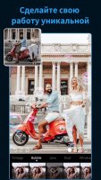Для редактировании фотографий приложение имеет специальный ряд категорий фильтров, среди которых:- Путешествия;