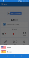В приложении нет меню как такового. Весь список доступных опций располагается на основной странице SP Steps. Интерфейс программы поддерживает только английский и испанский языки.Особенности