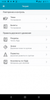 В личном профиле можно найти учебные материалы. Для удобства пользования их поделили на 4 темы: знаки, разметка на дорогах, конспекты по ПДД, разделы. Доступны такие опции как пробное прохождение онлайн-тестирования и изучение вопросов билетов. Здесь, как и в программе под названием Parking School, все учебные материалы проиллюстрированы.