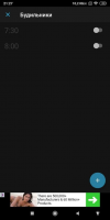На основной странице программы отображается текущее время и дата. В нижней половине интерфейса пользователи могут обнаружить иконку. Нажатие по ней открывает список настроенных будильников. Здесь же можно создать новый и настроить его.