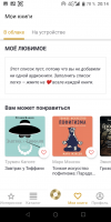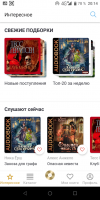 На основной странице приложения отображаются новые материалы и рекомендации. В отдельной вкладке пользователи могут обнаружить аудиозаписи, которые они добавили в избранное. Также программа сохраняет историю прослушиваний.