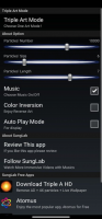 В утилите также предусмотрена возможность включения фоновой музыки и использования автоматического режима. Этот последний режим позволяет наблюдать за вариантами движения кинетических частиц без какого-либо воздействия на экран. Изначально в приложении применяется тёмный фон и яркие визуальные эффекты. Также можно включить режим цветовой инверсии, который изменит фон экрана на белый.