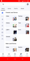 Аналогично реализована навигация по комиксам, книгам eBook и фанфикам. Для выбора используется вкладка Explore.