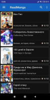 В приложение интегрирован полноценный ридер, который избавляет от необходимости использовать стороннее ПО для чтения. Основная панель отображает историю чтения, для удаления контента из списка необходимо длительное нажатие на обложку.Все основные инструменты и функции для комфортного чтения присутствуют. Приложение запоминает, где пользователь остановил чтение, возвращаясь к нужной странице. В настройка можно сменить ориентацию с вертикальной на горизонтальную. Режим манхва позволяет имитировать бумажные страницы с анимацией перелистывания.