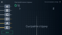 Одна из полезных функций программы – режим настройки гитары. Тимбро генерирует звуки, которые соответствуют нотам. Задача пользователя при помощи подсказок на дисплее сделать звучание струны максимально близкой к эталону. При этом при помощи микрофона утилита определяет, в какую сторону идет отклонение, что и позволяет выдавать рекомендации по расслаблению или натяжению нужной струны.Упражнения и табы