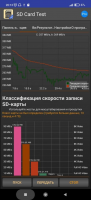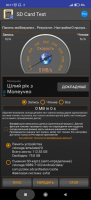 SD Card Test демонстрирует среднюю, текущую скорость. Теперь можно выявить, сколько за секунду передает и получает карта памяти мегабайт данных. Важно понимать, что тестировать гаджет безопасно, не произойдет произвольное удаление файлов. Единственное, что будет занимать достаточно много места внутреннего хранилища.