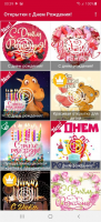 Открыв мобильную утилиту, пользователь обнаружит большую коллекцию поздравительных открыток. В каталоге есть анимированные изображения на разный вкус. Среди них есть открытки с тортами, животными, смайликами, букетами цветов, шариками и многое другое. Благодаря представленному разнообразию поздравлений пользователь сможет подобрать открытку для любого человека, даже маленького ребёнка.На каждом изображении есть текстовые надписи с поздравлением. Некоторые пожелания написаны в стихотворной форме, другие - в прозе. При желании пользователь может добавить к картинке собственную фразу с поздравлением. Выбранное изображение позволяется скачать себе на телефон.