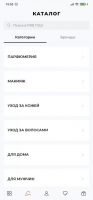 Для удобства навигации каталог поделен на категории: карты, макияж, парфюмерия, outlet, подарки, lifestyle, уход за волосами. В отдельную категорию собраны товары для дома и мужчин, дополнительно можно открыть подборку самых популярных позиций или посмотреть информацию об активных акциях.