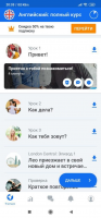 В приложении используется очень много материала разного типа. Для удобства весь контент структурирован и разбит на уроки, прохождение поэтапное.На одном из этапов обучения для учеников открывается возможность углубить знания при помощи общения с более опытными пользователями или носителями языка.