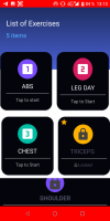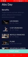 В мобильной программе пользователь обнаружит несколько видов занятий на разные группы мышц. Среди них занятия по тренировке трицепсов, пресса, ног, плеч и спины. При этом некоторые из них изначально недоступны. Для получения доступа ко всем видам упражнений юзеру нужно приобрести полную версию программы.Для каждого вида занятий имеется до десяти разных упражнений. Все необходимые действия, которые совершаются во время тренировки, снабжены подробным описанием и несколькими изображениями. Также указывается то, какие мышцы используются для того или иного упражнения. Благодаря этому пользователь с лёгкостью сможет понять, как правильно проводить тренировку и как она повлияет на его тело.