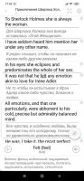 Разработчики приложения создали внутри него огромную библиотеку произведений, которые написаны на английском языке. Среди них не только Приключения Шерлока Холмса, но и Старик и море, Алиса в стране чудес и многие другие. Среди произведений работы Агаты Кристи, Христиана Андерсена и других, известных на весь мир писателей. По желанию пользователя имеется возможность значительно расширить библиотеку, воспользовавшись сайтом от разработчиков или организовать свою собственную, для нее доступны форматы fb2 и txt.Перевод