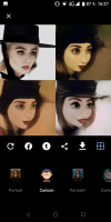 Предусмотренные дополнительные фильтры Cartoon+ и Portrait+ с большим количеством дополнительных опций. Набор полученных портретов можно быстро собрать в видео.