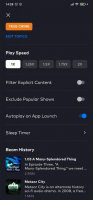 В приложении существует встроенный аудиоплеер, предназначенный для прослушивания выбранных подкастов. Запуск плеера осуществляется автоматически. В любой момент можно поставить воспроизведение на паузу в случае необходимости. Присутствует возможность выбора скорости прослушивания записей. Можно отключить воспроизведение через определенное время, установленное заранее. Это возможно благодаря таймеру сна.В процессе использования утилита сохраняет всю историю прежде воспроизводимых подкастов.