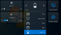 Главное меню позволяет настраивать громкость, яркость дисплея, менять схему питания, управлять модулем беспроводной сети. Это позволяет подобрать оптимальную конфигурацию, которая позволит продлить время автономной работы, обеспечив при этом комфортную работу и все необходимые функции. Весь интерфейс на русском языке, что заметно облегчает работу. Все доступные функции разбиты на логические блоки.