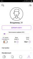 Завершив загрузку и установку Badoo можно сразу создать свой аккаунт. Тут вы можете оставить о себе данные, рассказать об увлечениях и характере. Сама процедура регистрации не сложная, профиль создается при помощи номера вашего мобильного телефона или электронной почты, куда приходит подтверждение аккаунта. Также приложение поддерживает авторизацию через социальные сети, например, ВКонтакте, Одноклассники или Facebook. Кроме того, возможна регистрация через аккаунт Яндекс.Возможности