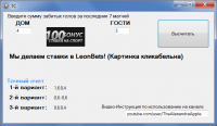 Приложение не требует установки на ПК, достаточно скопировать полученный файл в нужный каталог и запустить его. Далее необходимо указать сумму голов, которую определенная команда забила в семи последних матчах. При возникновении сложностей с работой, есть возможность обратиться к инструкции – серия коротких роликов позволит оперативно разобраться с интерфейсом и основными функциями.Прогноз