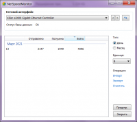 Приложение собирает детальную статистику сетевого трафика. Можно выбирать различные периоды – месяц, неделя или сутки. Для этого достаточно указать сетевой адаптер (статистика ведется раздельно) и период. Предусмотрен экспорт во внешний файл, поддерживаются расширения DB и CSV.Диспетчер процессов