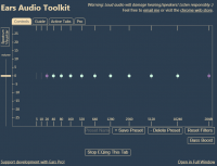 Приложение Ears Audio Toolkit реализовано в виде стандартного плагина для обозревателя и представляет собой удобный эквалайзер. Доступны все необходимые функции для настройки звука.