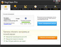 RegClean Pro представляет собой приложение для ОС Windows, с помощью которого можно устранить ошибки в реестре. Так же, как и утилита CCleaner, эта программа позволяет повысить скорость функционирования компьютера. Предусмотрена возможность периодически выполнять сканирование и очистку реестра в автоматическом режиме. Также имеется функция резервного копирования.