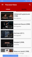 В приложении Русское Кино для мобильных аппаратов с OS Android есть большая «медиатека» бесплатного контента, в которой находятся тысячи картин. Каждый фильм содержит постер, полное описание и год выпуска.