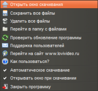 Этот менеджер закачек обеспечивает закачку работу в двух режимах. Вы можете закачивать медиаконтент, используя ручной и автоматический способ. Для ручного закачивания нужно войти на сайт, потом активировать воспроизведение, а затем вызвать контекстное меню, кликнув правой кнопкой мышки. После этого нажать на параметр «скачивание» на выбранном контенте,Автоматическая закачка упрощена. В этом случае, LoviVideo начинает закачку после того, как вы нажмёте кнопку для закачки. Автоматический способ быстрее, но в некоторых случаях при нерегулярных закачках можно использовать ручную закачку.