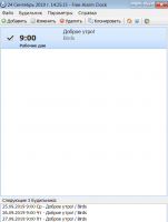 Особенностью приложения является то, что пользователь способен настроить множество разных параметров. В том числе позволяется добавлять текстовую надпись, а также точное время сигнала и дни недели для повторных срабатываний. Дополнительно к этому пользователь может загрузить в утилиту любой аудиофайл с расширением WMA либо WAV. При желании можно использовать звуковые сигналы из встроенной коллекции.На главной странице компьютерной утилиты отображается перечень всех созданных будильников. При необходимости сигналы можно отключать. Для этого достаточно снять галочку напротив будильника.