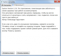 Когда программа будет установлена, то можно заметить ее иконку в области уведомлений. Чтобы настроить параметры работы утилиты, требуется нажать правой кнопкой мыши на значок, тем самым выбирая тот самый соответствующий пункт меню. Кроме того, есть возможность задать длительность не только большого, но и короткого перерыва. Сюда нельзя не отнести еще и рабочие интервалы, что немаловажно.Помимо всего сказанного, приятно порадует еще и то, что программа позволяет использовать звуковые оповещения.