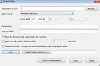 Приложение RunAsDate позволяет запускать указанные программы в определенное время. Можно настраивать интервал работы и активировать по команде сразу несколько программ.
