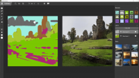 Завершив создание наброска или выбрав один из имеющихся макетов, юзер получит возможность настроить предстоящую генерацию детальной картинки. Например, человек способен указать, какие материалы должны использоваться в итоговом изображении. Среди вариантов присутствуют: трава, снег, вода, горы, холмы и так далее. Также пользователю предлагается выбрать один из девяти доступных стилей. Следует отметить, что компьютерное приложение лучше всего работает с пейзажами природы.После настройки параметров преобразования юзеру останется немного подождать пока алгоритм формирует итоговое изображение. В результате пользователь получит уникальную картинку.