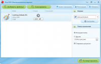 Перед конвертацией юзеру нужно настроить параметры данного процесса. Первый шаг – выбор расширения, которым будет обладать новый файл. Среди доступных вариантов имеются: PNG, TIFF, DOC, HTML, XLS, JPEG, RTF и ряд других. Последующие параметры преобразования зависят от выбранного формата. К примеру, если юзер хочет получить картинку, то он сможет изменить контрастность и некоторые другие характеристики графического контента.Последний этап настройки – выбор места для хранения контента. При желании юзер может активировать опцию, отвечающую за открытие нового файла сразу после его создания в процессе конвертации.