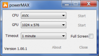 powerMAX – это утилита, дающая возможность проверить функционирование видеоадаптера и процессора под максимальной нагрузкой. Программа не предоставляет отчётов по результатам проверки. Нет перевода на русский язык. Применять возможности утилиты можно на Windows устройствах, начиная с 7 и 8 версии.