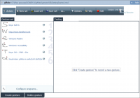 После запуска утилиты нужно выполнить настройку параметров управления, нажав на кнопку Create gesture и затем нарисовать жест в правой части основного окна с использованием курсора.Предусмотрена опция установки продолжительности паузы перед началом осуществления операции. Помимо этого, юзерам доступно создание конфигураций для различных программ. После того как набор жестов будет добавлен, надо указать исполняемый файл, в сочетании с которым будет использоваться этот профиль.