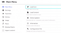 В основном меню также можно настроить конфигурацию ядра. Предусмотрена возможность настраивать параметры для конкретной игры. Для загрузки данных можно использовать файлы различных форматов. Перед работой приложение автоматически сканирует контент на наличие ошибок. Предусмотрена функция сортировки игр по нескольким параметрам.