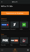 В Wifire TV вы можете смотреть около 180 телеканалов. Выбирайте разные темы для просмотра и наслаждайтесь любимыми телеканалами. Смотрите разные каналы на тему спорта, музыкальные каналы, кино, новости и прочее. Больная часть каналов доступна в разрешении HD. Купив подписку, вы можете пользоваться полным пакетом каналов, но она стоит очень дорого.После покупки премиумного режима просмотра вы получаете доступ к медиатеке от популярных сервисов. Не забывайте, что кроме покупки подписки, вы можете покупать фильмы и сериалы в «поштучном» режиме или оформлять их в аренду за небольшую плату.