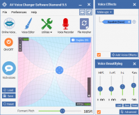 AV Voice Changer Software Diamond Edition - утилита с весьма простой главной функцией - обработка тембра голоса. Программа может работать в нескольких режимах, начиная от обработки записанного заранее файла и заканчивая обработкой в режиме реального времени при помощи подключённого микрофона.