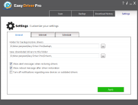 Программа всегда создаёт резервные копии драйверов, если выполняет их удаление. Это может потребоваться для тех ситуаций, когда установленное ПО окажется несовместимым, или просто установится неправильно. Тогда Easy Driver Pro сможет откатиться до предыдущего состояния системы, полностью избавившись от неработающего компонента.Настройки