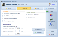 Практически сразу после установки Mz RAM Booster начинает свою работу по автоматической очистке памяти, увеличивая скорость ПК. Можно настраивать самостоятельно работу приложения не только непосредственно находясь в нем, но и с помощью иконки находящейся в трэе. При нажатии правой кнопки мыши на иконке выскакивает краткое меню для автоматической очистки или выборочно настроенной. Mz RAM Booster может выводить практически всю информацию о ПК, скорость, загруженность, частота процессора, температура и другие параметры полученные при первичном и постоянном сканировании компьютера.